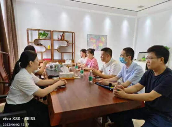 6月2日,信豐縣人民醫(yī)院第四支部書記鐘雷、耳鼻喉科主任羅金橋、院感科主任曹莉、耳鼻喉科護(hù)士長馮玉玲、四支部組織委員郭榮盛一行來到朝陽聚聲泰開展醫(yī)企對接交流,就“優(yōu)化營商環(huán)境,做實(shí)健康服務(wù)”主題與我公司支部組織委員黃麗麗深入交流。