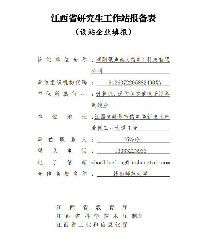 • 江西省研究生工作站報(bào)備表公示
