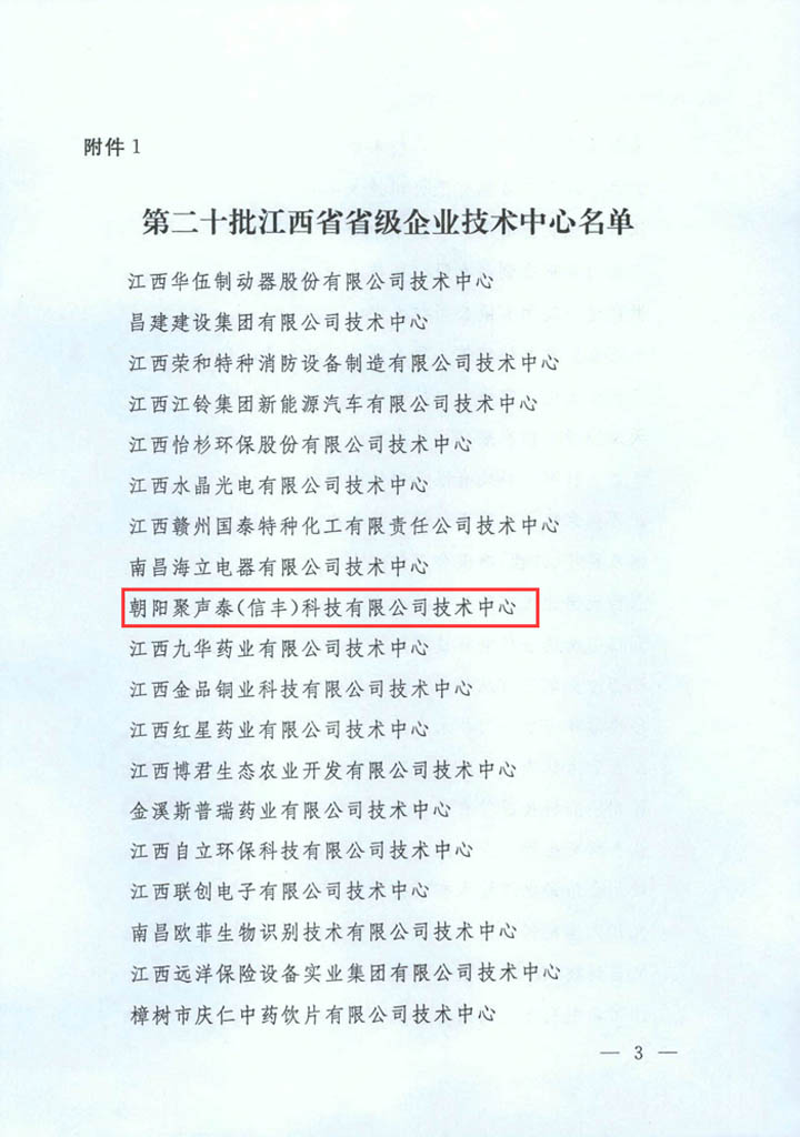 • 朝陽聚聲泰企業(yè)技術(shù)中心被評(píng)為省級(jí)技術(shù)中心