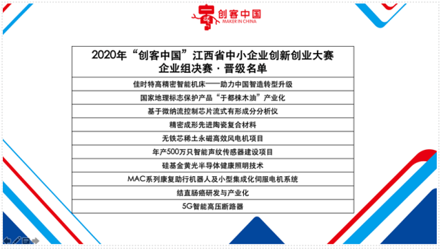 9月9日,2020年“創(chuàng)客中國(guó)”江西省中小企業(yè)創(chuàng)新創(chuàng)業(yè)大賽經(jīng)過(guò)多輪比拼,終于進(jìn)入到最精彩的決賽階段!此次總決賽與前面的復(fù)賽都在南昌高新區(qū)舉行,近千名參賽團(tuán)隊(duì)由報(bào)名、初賽、復(fù)賽、決賽等各個(gè)環(huán)節(jié)組成,經(jīng)過(guò)各個(gè)環(huán)節(jié)緊張激烈的角逐,終于評(píng)出了本次大賽的獲獎(jiǎng)團(tuán)隊(duì),朝陽(yáng)聚聲泰(信豐)科技有限公司在康良軍同志的代表下,公司“年產(chǎn)500萬(wàn)只智能聲紋傳感器建設(shè)項(xiàng)目”榮獲了本次總決賽的第三名。