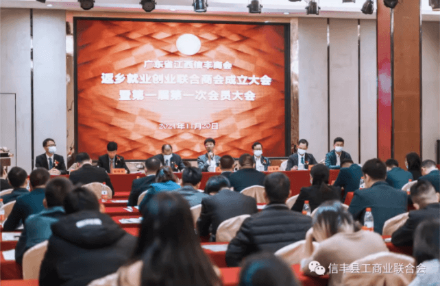 臍橙滿樹(shù)似黃金,橙香四溢飄萬(wàn)里。11月20日,廣東省江西信豐商會(huì)返鄉(xiāng)就業(yè)創(chuàng)業(yè)聯(lián)合商會(huì)舉行成立大會(huì)暨第一次會(huì)員大會(huì)??h委常委、統(tǒng)戰(zhàn)部長(zhǎng)李紹武,縣政協(xié)副主席、工商聯(lián)主席宋裕華、縣委統(tǒng)戰(zhàn)部分管日常工作的副部長(zhǎng)李賽香,縣委統(tǒng)戰(zhàn)部副部長(zhǎng)、縣工商聯(lián)黨組書(shū)記、常務(wù)副主席郭昌福,各縣直部門(mén)負(fù)責(zé)人、鄉(xiāng)鎮(zhèn)黨委書(shū)記,廣東省江西信豐商會(huì)會(huì)長(zhǎng)袁勇、執(zhí)行會(huì)長(zhǎng)黃學(xué)平、廣州分會(huì)候任會(huì)長(zhǎng)王明富、深圳分會(huì)會(huì)長(zhǎng)葉昌友、惠州分會(huì)會(huì)長(zhǎng)鄒貴春、秘書(shū)長(zhǎng)蘇有華等嘉賓、會(huì)員朋友們共計(jì)300余人先后參加揭牌儀式、成立大會(huì)和慶典晚宴系列活動(dòng)。