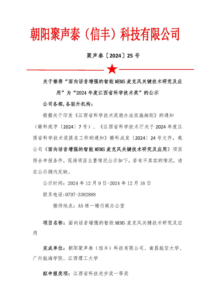 • “面向話音增強(qiáng)的智能 MEMS 麥克風(fēng)關(guān)鍵技術(shù)研究及應(yīng)用”的公示